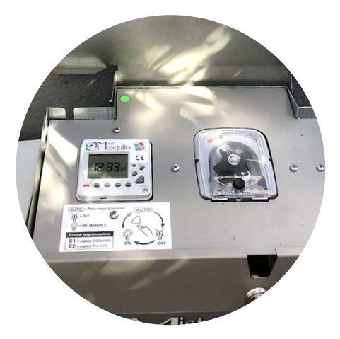 La centralina, che rappresenta il cuore del sistema, viene collegata sia alla rete elettrica domestica sia alla rete idrica. Il dispositivo provvede automaticamente alla diluizione del prodotto antizanzare con acqua.